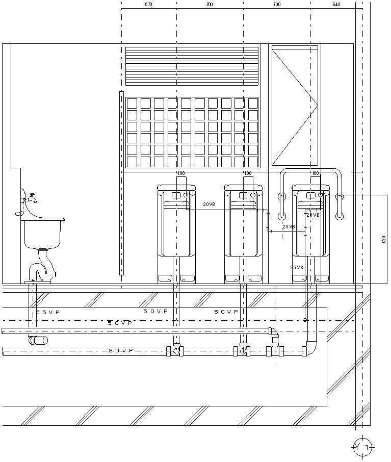 トイレ施工図 s=1/20 断面図
